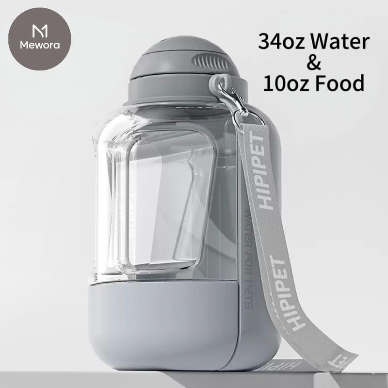 2 in 1 Pet Water Bottle - 1000Ml/34Oz Pet Water Bottle with 300Ml/10Oz Food Container, Large Outdoor Pet Travel Cup, Portable Leak-Proof Dispenser for Dogs, Ideal for Travel, Hiking, and Outdoor Use, Gift for Dog Lovers, Christmas & New Year Present
